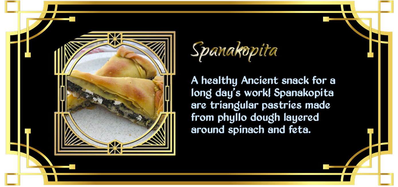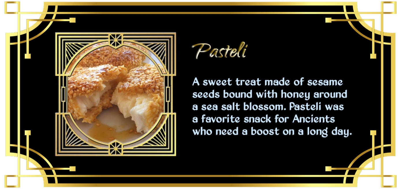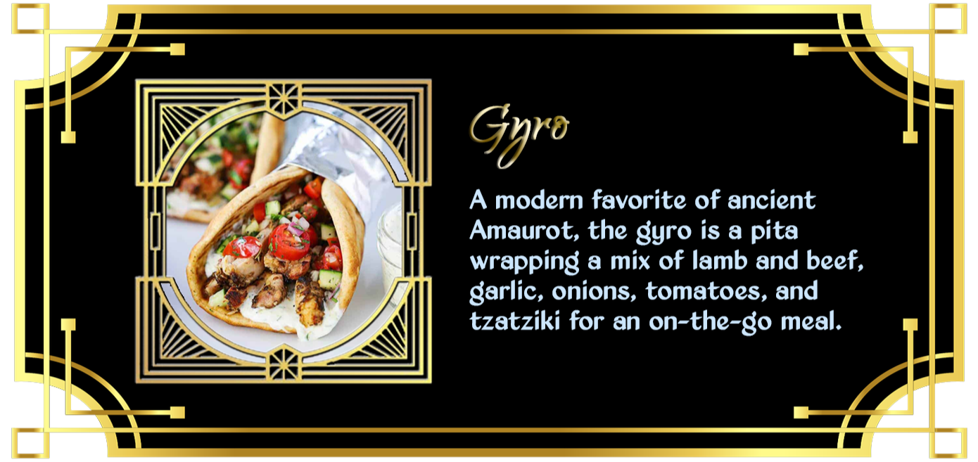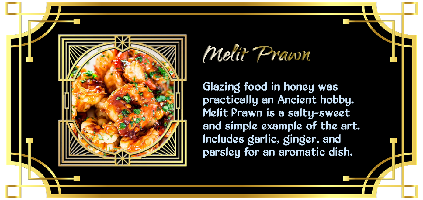 all sorts of food, but especially the kinds of things enjoyed by the Ancients themselves.